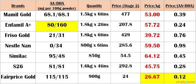 As usual, mummies please breastfeed as long as possible, but don't force it if you are losing your sanity. The prices are updated as on 1st November 2017. S26 was the cheapest but with Fairprice Gold, they easily disrupted the prices of the market and dethrone S26.